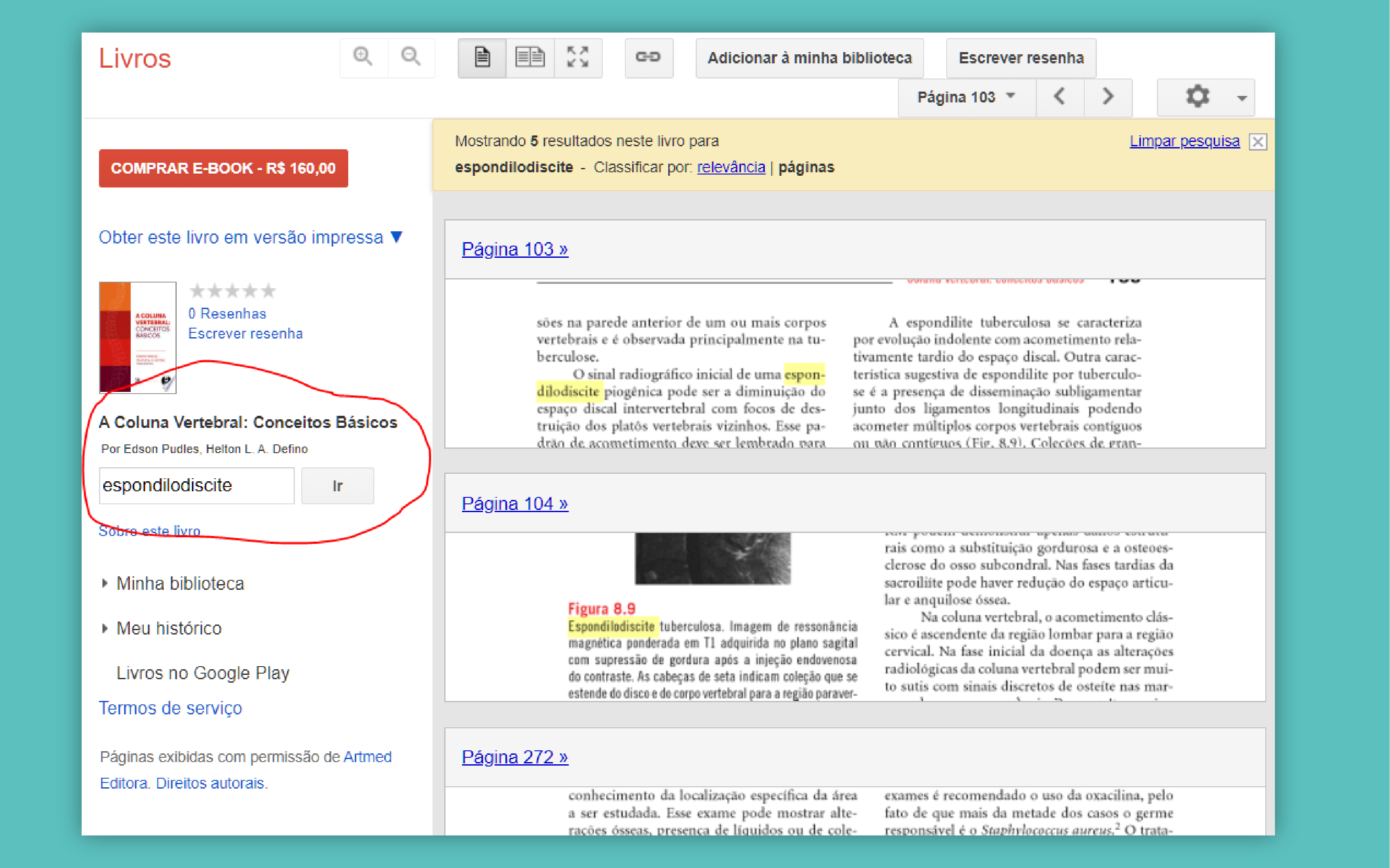 Por falar nisso, além da caixa de busca do Google Livros, utilize a caixa de busca interna dos livros encontrados para pesquisar seu conteúdo.